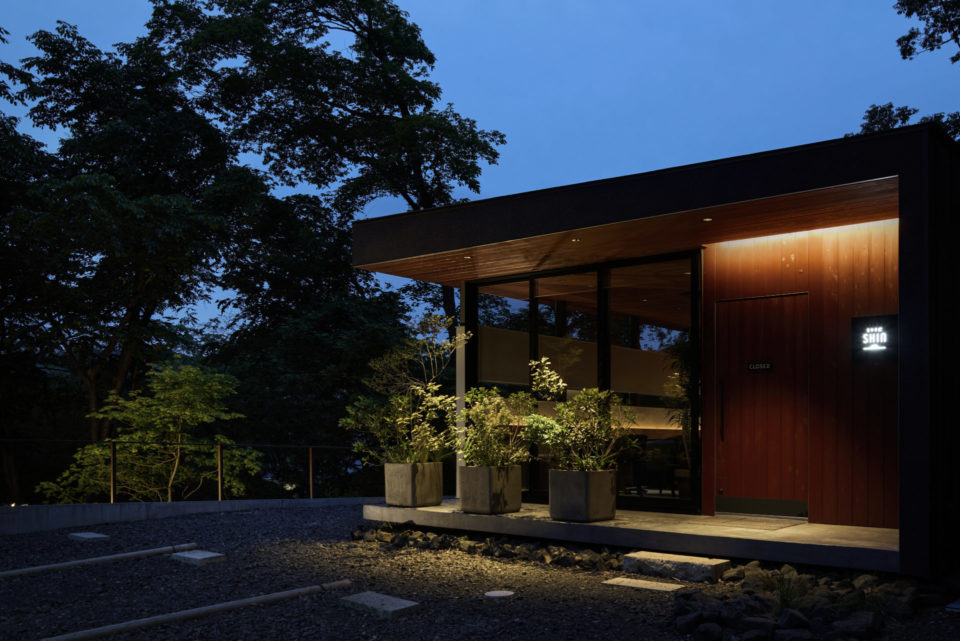 「もりそばSHIN」は、名取川の清流と磊々狭の奇岩渓谷、そして秋保の深い緑という唯一無二のランドスケープを取り込みながら、小さな建築の中に「お店」と「住まい」という二重性を同居させた。店舗は地域に開かれ、住宅は自然に寄り添う。その両者をつなぐのは、限られた面積を超えて広がる風景との交感である。ここでは蕎麦を味わうこと、そして自然と共に時間を過ごすことが同じ地平に結びつけられている。